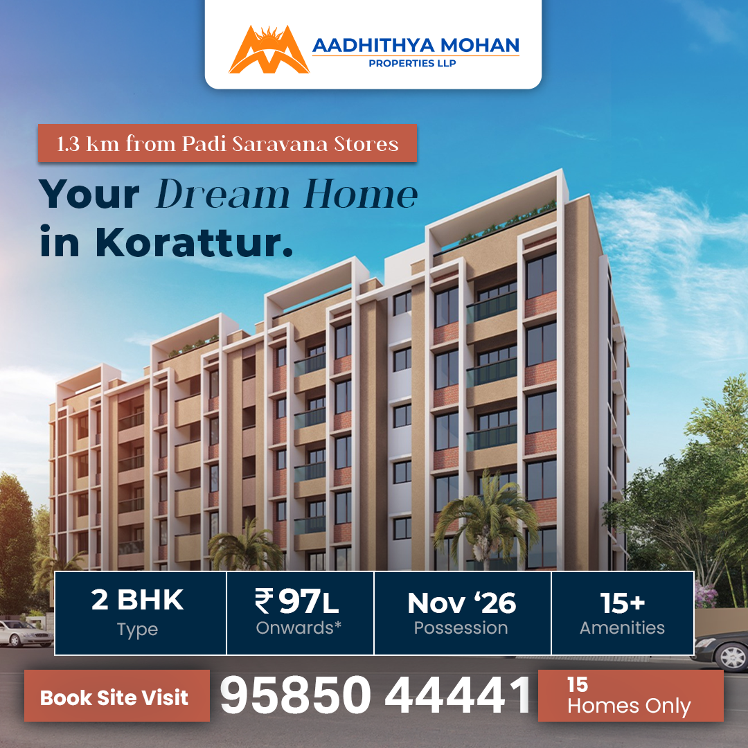 Designed with a vision for refined urban living, Adanya Korattur stands as a symbol of sophistication and spacious modern lifestyle. This premium development rises gracefully within a well-connected neighborhood, offering a perfect harmony of luxury, comfort, and intelligent design.