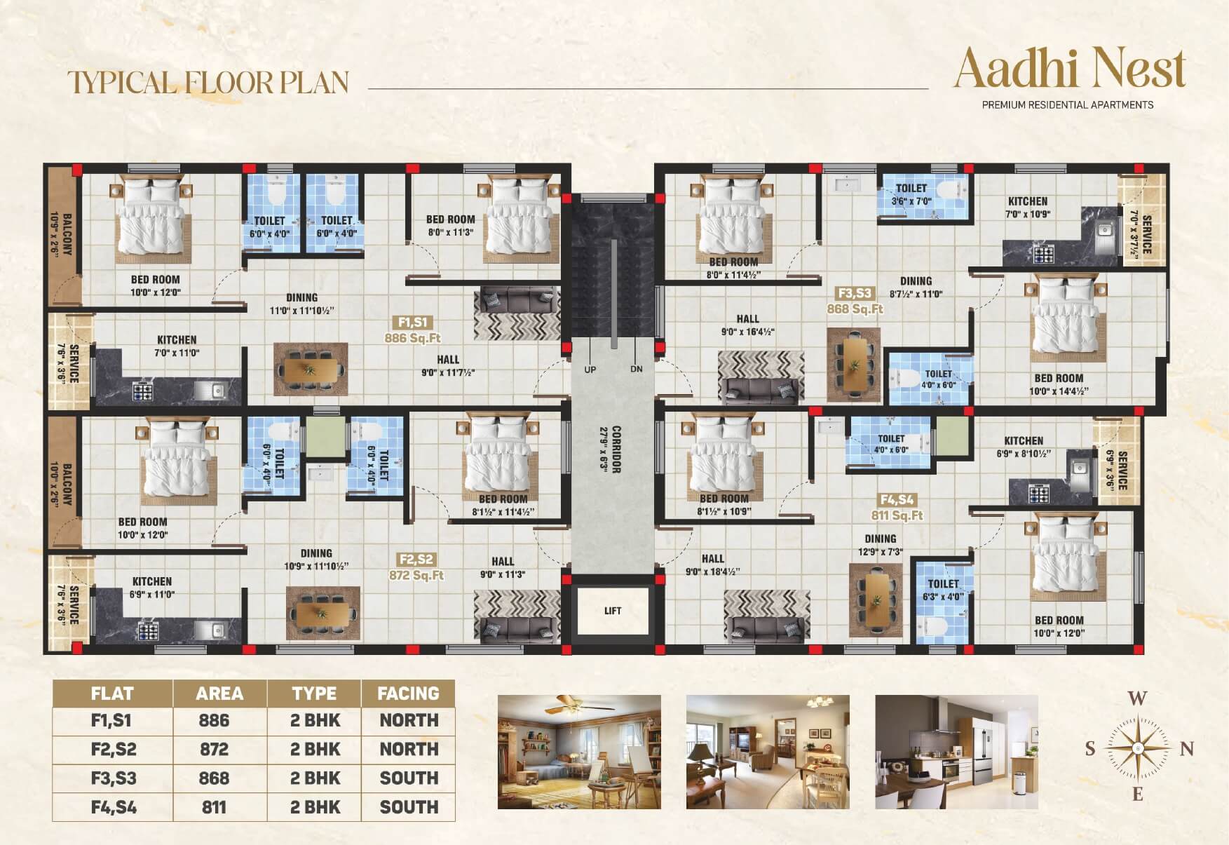 - Built-up Area: 886 sq.ft